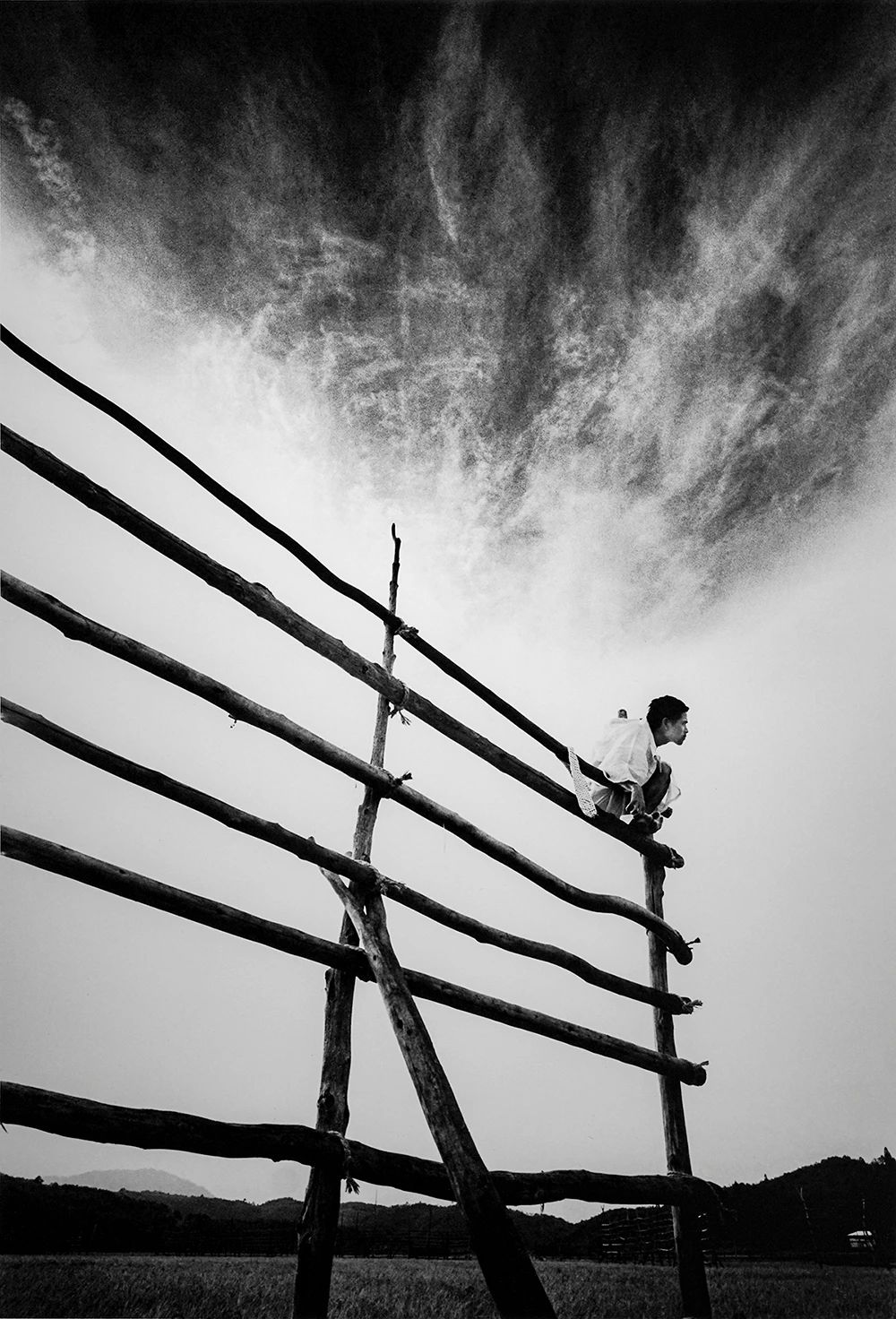“彝寨”,云南富宁,1992 吴家林 © 吴家林,摄影黑皮书 S-15《中国边陲 – 吴家林》封面作品