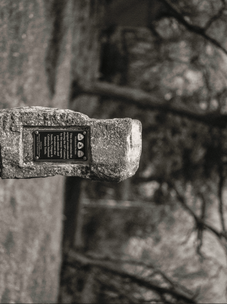 说它不起眼,一点也不夸张——一个普通的没有Gate的小区里的一块空地,有介绍说此处可见西进时代的车辙,我原本信以为真,到了此处之后才发现,一片修建还算整齐的杂草上面,草都不是刻意维护的,没有纪念碑,也没有停车场,只是一块立在草地上的介绍牌,孤零零地指认着历史的重量:俄勒冈小径、加州小径与圣达菲小径,曾在此交汇。这是19世纪美国拓荒史的心脏节点,是数以万计移民启程向西的分叉点。