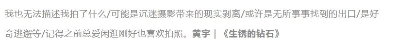 《生锈的钻石》表面上是在承认困惑,实际上是在卸责。你说你拍得随意,那你就该对这个随意负责。你怎么挑选、怎么取舍、为什么留下这一张而不是另一张?“说不出来”的姿态只有在影像本身强大时才有意义,否则就是语言在帮你擦屁股。