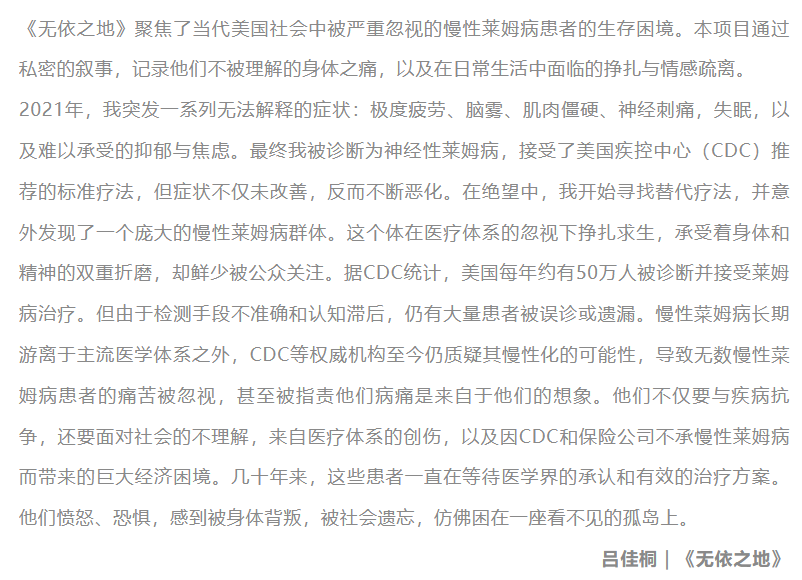它的问题不在于表达不清,而是过于清楚地服从“正当叙事”。疾病如何被制度遗忘,这是一个好议题;但当你把自己写成一个“应当被理解与帮助的例子”,你其实让创作屈服于共情市场的逻辑,图像就变成了伦理诉求的插图。这不是观看,是求证。