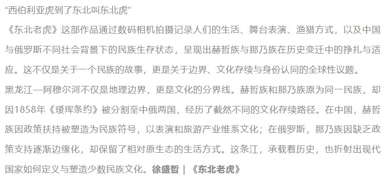 《东北老虎》是唯一让我产生进一步阅读兴趣的文本。它试图搭建政治地理的叙事对位,也试图进入边界与文化的缝隙。可惜它不够狠、不够错、不够怪。它的批评性仍然包裹在学术语气里,还没走进观看与拍摄真正的裂缝。