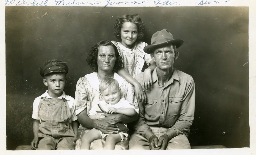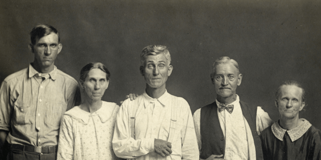 相较之下,迪斯法默则更像是一位沉默的乡镇观察者。他一生几乎未离开阿肯色州希本泉,在自家简陋的影楼里,使用一台大画幅相机与过时的玻璃底片,为前来拍照的乡民留下他们最真实的样子。他没有分类,也没有计划,更不引导拍摄——没有背景布、没有姿态设计,也没有笑容。他只是在那里,凝视着一张张朴素、倦怠,甚至茫然的面孔,让这些不具名的乡村居民,在毫无掩饰的影像中,显出一种近乎残酷的诚实。